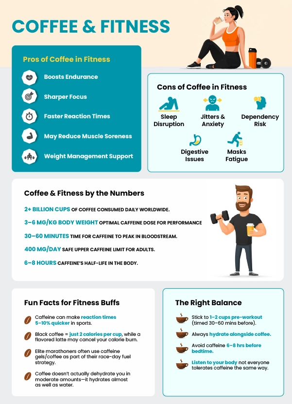 At the end of the day, it’s about balance. Treat coffee like a supportive workout buddy: helpful, motivating, but not something you should rely on for every single move. Combine it with good sleep, hydration, and nutrition, and you’ve got a winning recipe for fitness success.