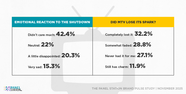 A common belief shared across the survey was that MTV slowly drifted away from what made it powerful in the first place. People feel the brand’s spark faded gradually, over years of shifting formats and priorities.